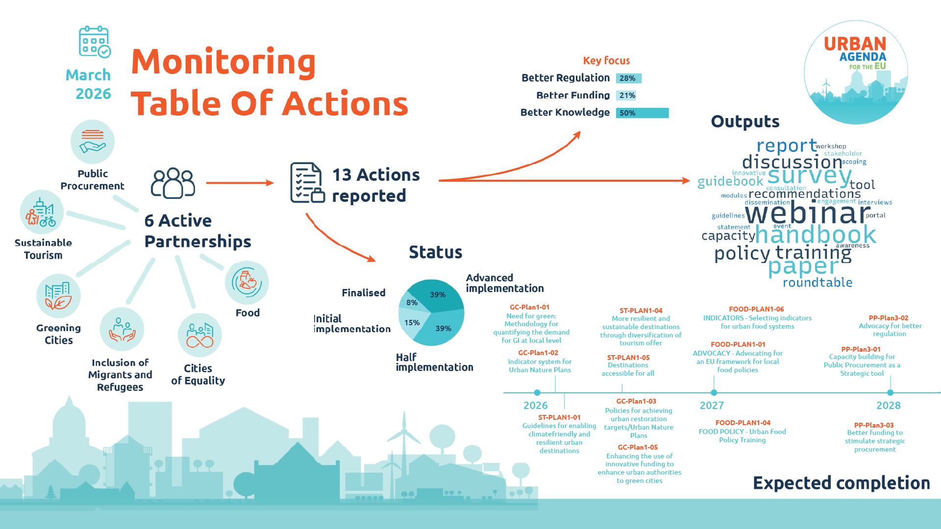 The Monitoring Table of Actions for the Urban Agenda for the EU offers a thorough overview of initiatives carried out by the Thematic Partnerships.